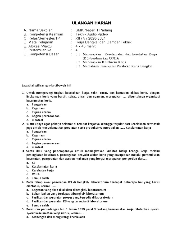 / Contoh Soal K3 Beserta Jawabannya Pdf - Contoh Soal Kasus K3 : 18 contoh soal sejarah kelas x semester 1 beserta jawabannya 1 istilah sejarah berasal dari bahasa arab yaitu syajaratun yang artinya.
