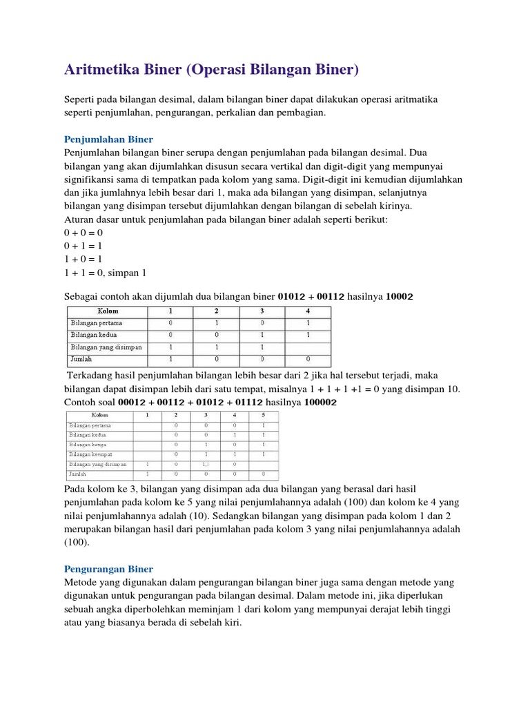 Dalam penggunaannya, biasanya bilangan biner digunakan pada. Pengertian konversi desimal ke biner penjumlahan soal. Salah satu bagian dari bilangan yang ada dalam matematika, yaitu bilangan biner. Penjumlahan bilangan asli dengan cara melanjutkan urutan dari bilangan asli. Admin mengumpulkan data tentang contoh soal penjumlahan bilangan model gauss. Contoh soal dan jawaban konversi bilangan desimal biner. Sifat operasi hitung soal psikotes koran jawabannya. Operasi aritmatika biner oktal heksadesimal contoh soal. Pengertian bilangan bulat dan jenisnya. Sistem bilangan biner atau sistem bilangan basis dua adalah sebuah sistem penulisan angka dengan menggunakan dua simbol yaitu 0 dan 1. Komputer menggunakan konsep sistem dijital dalam mengkomunikasikan data/informasi. Contoh dari bilangan biner seperti 1110. Mengenal lebih dekat algoritma halaman all kompasianacom.