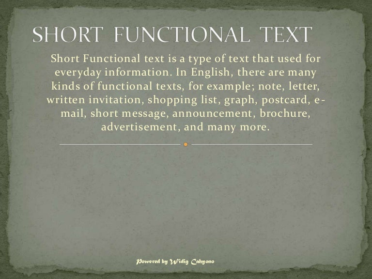 Short Functional Text Learning English Through Reading from dewaadivanwinata.files.wordpress.com We did not find results for: Check spelling or type a new query. Maybe you would like to learn more about one of these?